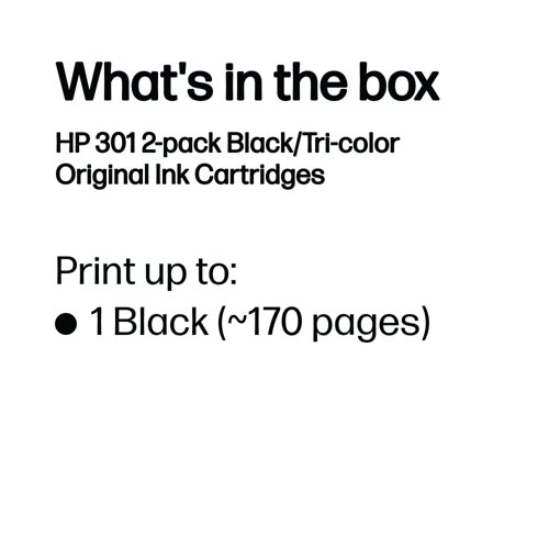 - Containing one black and one tri-color ink cartridge, this HP 301 Cartridge 2-Pack is perfect for providing sharp, clear prints in one convenient package. For use with the Deskjet 1510, 2540 and the Officejet 2620, 4630, these genuine HP ink cartridges work with your printer to create first class text, images and graphics every time.